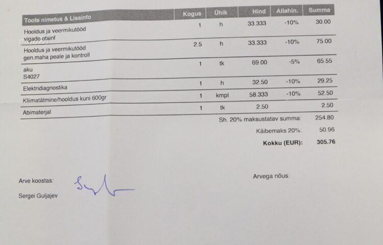 Kõik vajalikud tööd on dokumenteeritud ning teostatud vaid ametlikus teeninduses.